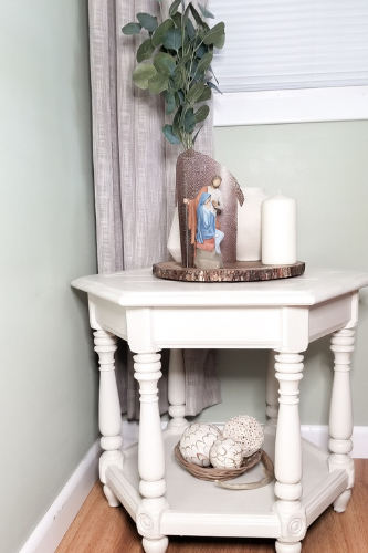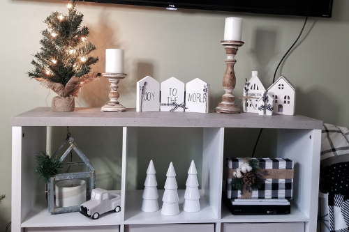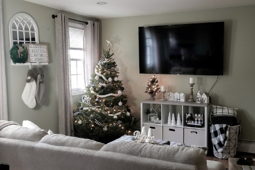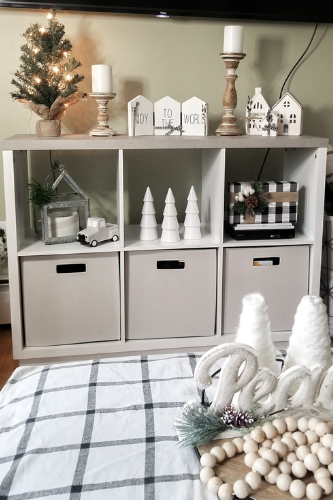 I have the traditional green, but I stayed away from red. So, I mostly have green, white, browns and black. I wasn’t sure how I would like it, but I LOVE it! It feels so cozy. Plus, I’ve been able to find ways to use my regular decor and implement them in with the Christmas decor and you would never know it wasn’t seasonal! I’m all about saving that extra buck!