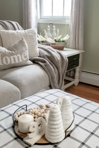 Christmas is here! I’m not going to lie, I was so excited this year that I started decorating early. I started by sprinkling in a few ceramic houses and trees in with my knit pumpkins. No big deal, right? Well now I am full blown into the Christmas decorations and my theme this year has been simple, neutral Christmas decor.